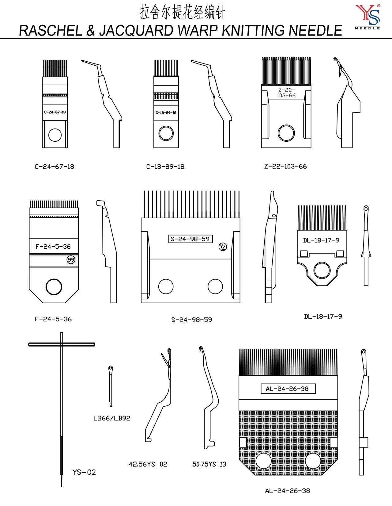 Raschel Jacquard Warp Knitting Needles are core loop-forming elements used in multi-bar jacquard warp knitting machines, typically latch needles. They enable the precise coordination of multiple guide bars and Jacquard devices to lay yarns of different materials and colors according to design requirements. The automatic opening and closing of the latch complete loop formation, weft insertion, or laying-in structures, thereby weaving intricate, multi-layered patterns into the fabric. These needles are key technical components for producing high-end lace, mesh, and decorative fabrics.
